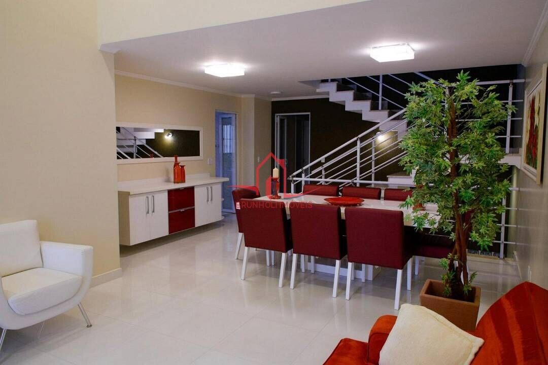 O imóvel possui 4 dormitórios, sendo 2 suítes, bela cozinha planejada com despensa, área de serviço, lounge, sala de jantar, sala de estar, pé direito alto, sala de TV ou cinema no mezanino, escritório, sala com 2 ambientes no piso inferior e banheiro social para atender a área da churrasqueira, vaga para no mínimo 6 carros.