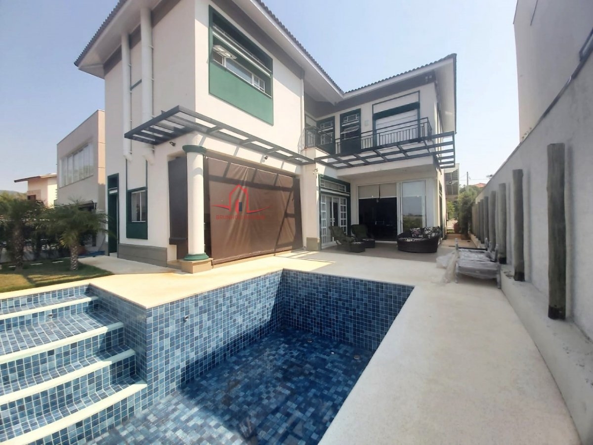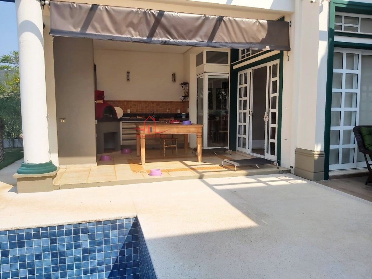 O imóvel possui 3 suítes, lavab, sala de TV e escritório, sala de estar, jantar e almoço, suíte de empregada, piscina, churrasqueira e forno de pizza.